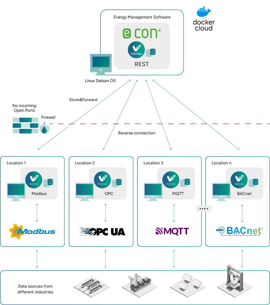 econ solutions replaced its legacy SOAP interface and adopted vNode as a unified industrial connectivity layer, achieving seamless data integration from Modbus, OPC UA, BACnet, MQTT, and REST API.